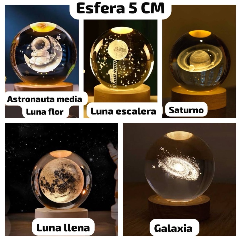 Dale un toque mágico a tu espacio con esta hermosa lámpara de bola de cristal con diseño de galaxia y astronauta.