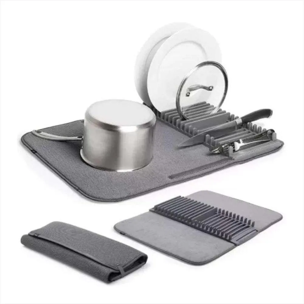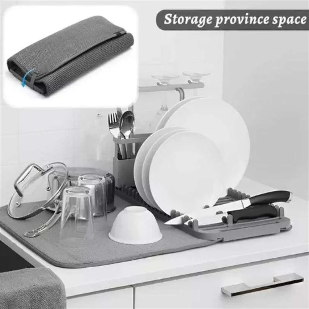 Mantén tu cocina seca y organizada con este práctico tapete de microfibra con soporte para platos y utensilios. Absorbe el agua rápidamente, evita charcos y ahorra espacio gracias a su diseño plegable.